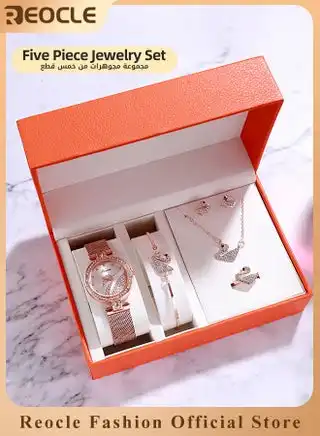 noon.comWomen's Elegant Watch and Bracelet Set with Watch & Bracelet & Necklace & Ring & Earrings & Bracelet Jewelry Set Dress Wrist Watch for Ladies as Gifts
