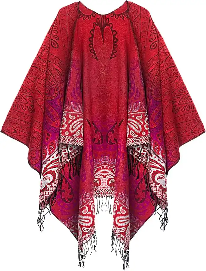 Women's Fashionable Retro Style Vintage Pattern Tassel Poncho Shawl Cape — Price History & Tracker | DeserTracker