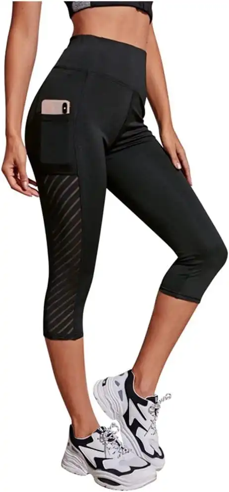 amazon.comWomen's High Waisted Yoga Capri Pants With Side Pockets Stretch Mesh Workout Tummy Control Leggings For Sports (M, Black 1)