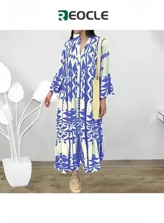 Women's Maxi Dress Flowy Bohemian Dresses Long Sleeve Cotton V-Neck Button Up Floral Print Long Dresses