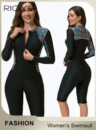noon.comWomen's One Piece Rash Guard Swimsuit, Long Sleeve Boyleg Sun UV Protection Swimwear for Ladies, Printed Modest Bathing Suits, Tummy Control Zip Front Wetsuit, Ladies Sport Swimsuit Surfing Swimwear for Swimming, Surfing, Diving, Wakeboarding, Snorkeling and Beach Vacations