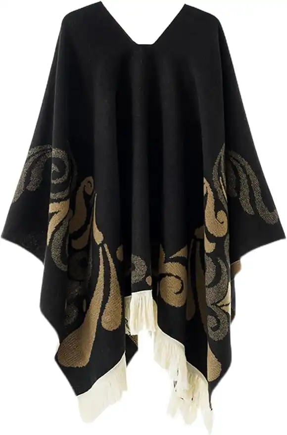 Women's Pullover Poncho Ethnic Style Poncho for Women Tassels Knitted Shawls and Wraps Capes