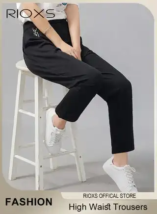 Women's Relaxed Fit Ankle Length Trousers Elastic Waist Pant Straight Leg Work Pant
