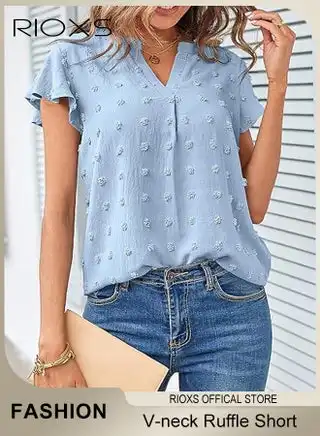 Women's Summer Elegant T-shirt V-neck Ruffle Short Sleeve Top Casual Solid Color Chiffon Cool Shirt for Daily Wear — Price History & Tracker | DeserTracker
