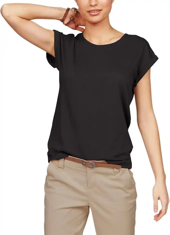Women's T-Shirt Plain Crew Neck Short Sleeve Summer Shirt Loose Tops Basic Tops, black, M