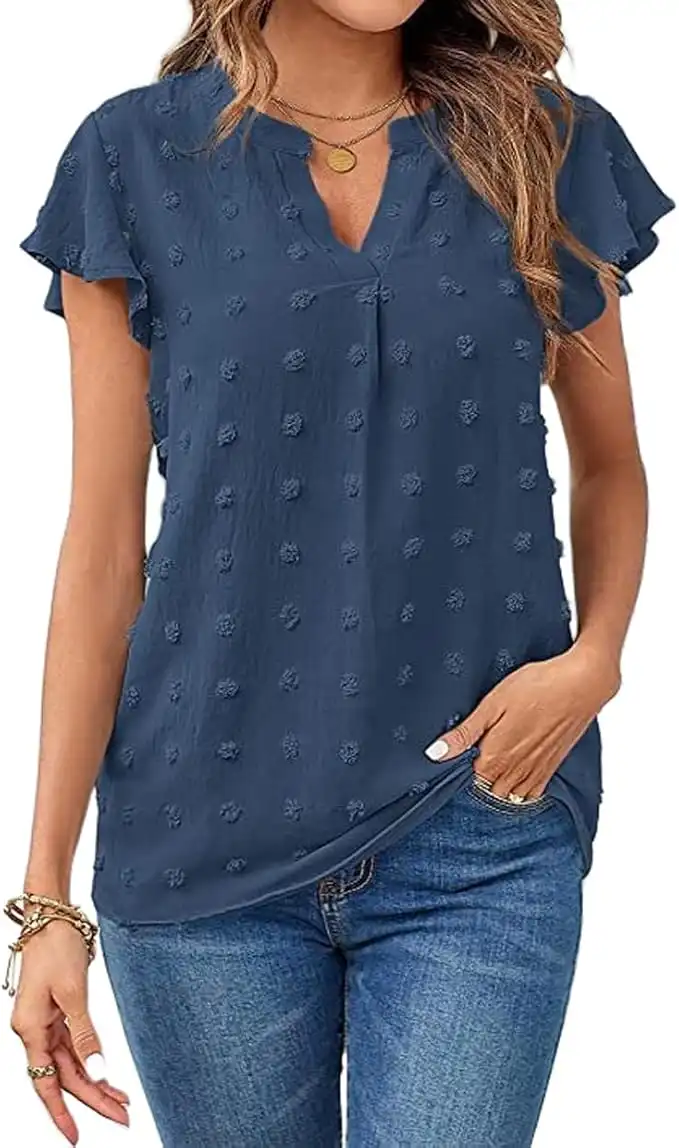 Women's V-neck Solid Color Chiffon Tops Temperament Ruffle Sleeve Loose Pleated T-Shirt — Price History & Tracker | DeserTracker