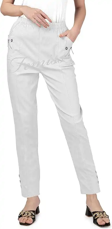 Womens Trousers Elasticated High Waist Relax Fit Ladies Full Length Casual Everyday Soft Stretchy Lightweight Pants