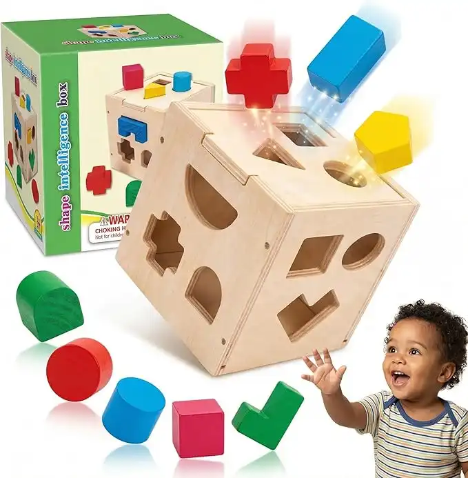 Wooden Shape Sorter Cube – 15 Shapes Montessori Educational Toy for Toddlers 1-3 Years, Non-Toxic Natural Wood Sorting Blocks, Kids Learning Toy — Price History & Tracker | DeserTracker