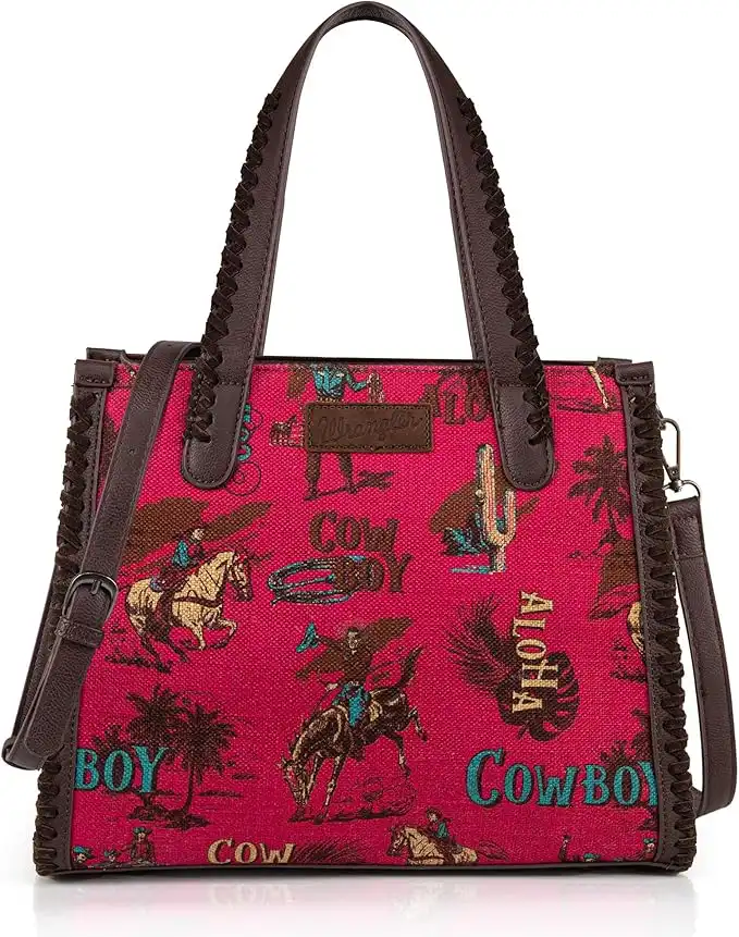 Wrangler Cowboy Cool Satchel Handbags Western Tote Bag for Women, Cowboy Cool Hot Pink