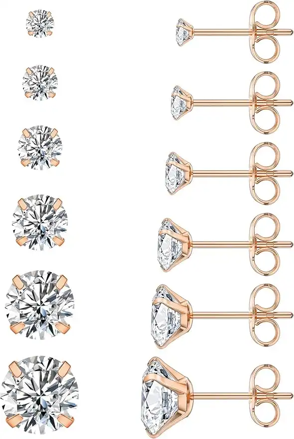 Wssxc 5 Pairs Stud Earrings Set, Hypoallergenic Cubic Zirconia 316L Earrings Stainless Steel CZ Earrings 3-8mm, Rose Gold — Price History & Tracker | DeserTracker