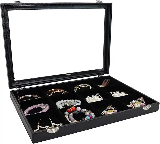 Wudygirl Jewelry Tray 12 Grid Jewelry Organizer with Clear Lid Bracelet Holder Organizer Display Case Removable, Black Velvet (12 Grid) — Price History & Tracker | DeserTracker