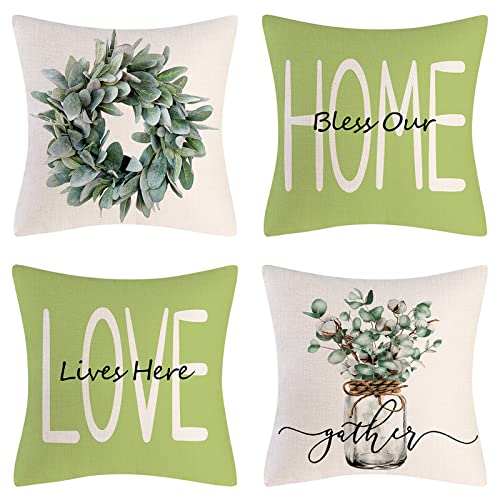 wyooxoo Throw Pillow Covers 20x20 Set of 4 Farmhouse Pillow Covers Cushion Cases Decorative Pillowcases for Sofa Couch Living Room Outdoor Home Decor (Light Green, 20" x 20")
