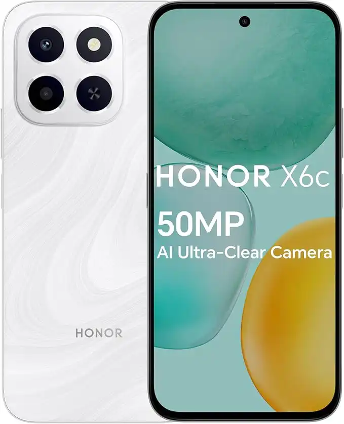 amazon.comHONOR X6c Smartphone 6GB RAM 128GB ROM, 6.61" 120Hz Display, 50MP Camera, 35W Fast Charging, Dual SIM, Moonlight White – Middle East Version