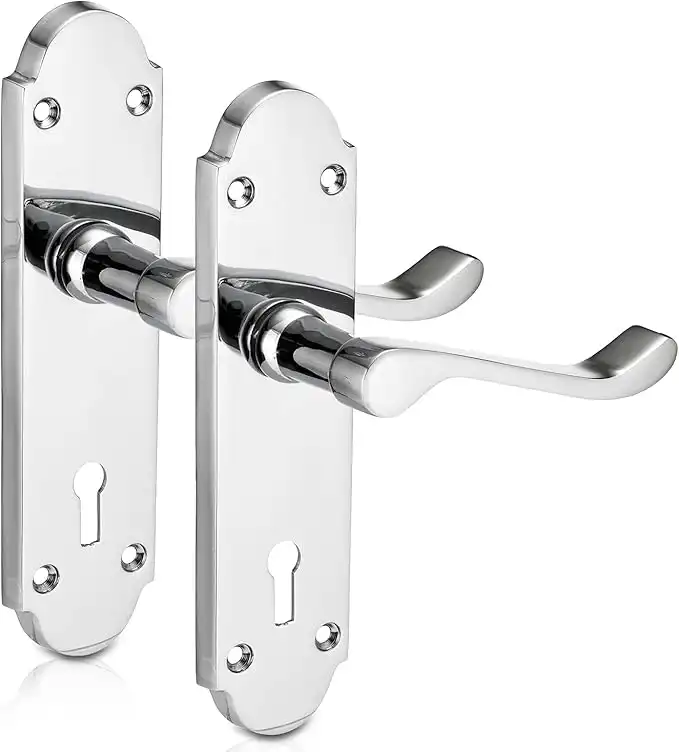amazon.aeXFORT® Richmond Lever Lock Scroll Chrome Door Handles, Elegant Door Handle Set, Epsom Shaped on Long Backplate, Ideal for All Types of Internal Wooden Doors That Require Key Locking Security [1 Pair]