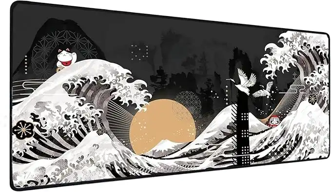 XL Gaming Mouse Pad, Azonee Large Desk Mat with Stitched Edges, 3mm Thick, Waterproof & Non-Slip Rubber Base, Smooth Surface for Computer, Laptop, Office & Home (80x30cm, Kanagawa Wave Art Design)