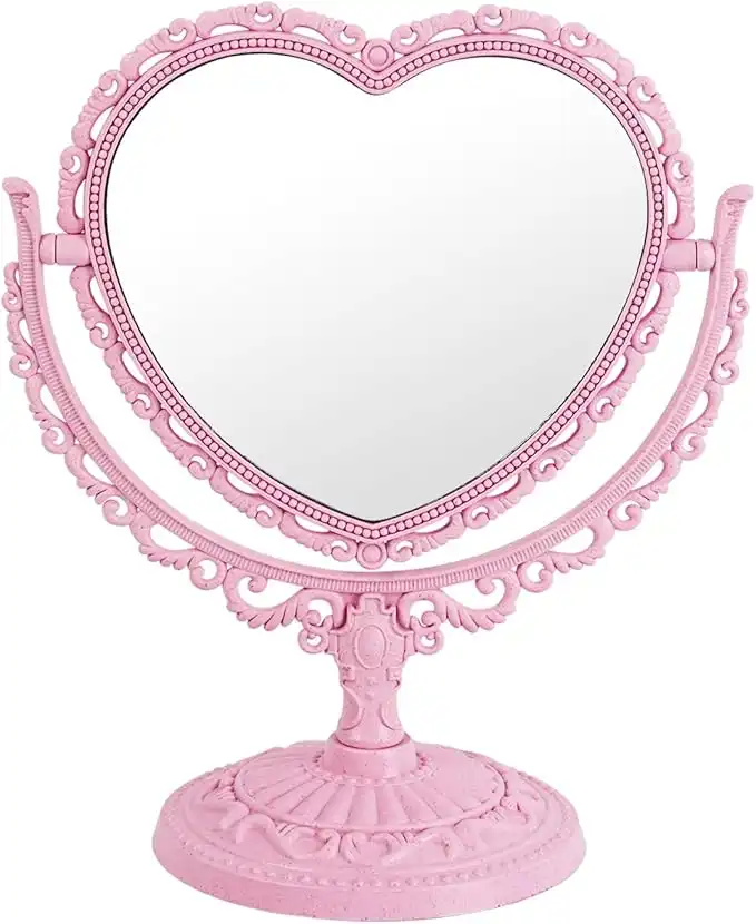 XPXKJ Heart Shaped 7-Inch Tabletop Vanity Makeup Mirror with 3X Magnification, Vintage Pink Heart-Shaped Dressing Mirror for Bathroom & Bedroom — Price History & Tracker | DeserTracker