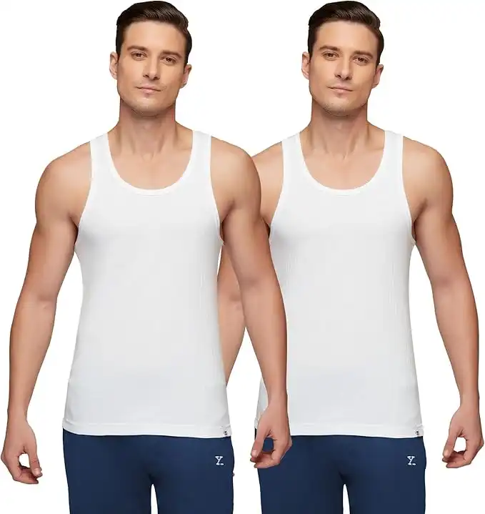 XYXX Men's Super Combed Cotton Round Neck Ribbed Vest - High Moisture Absorbing Innerwear for Men with Anti-Microbial Silver Finish-Pack of 2