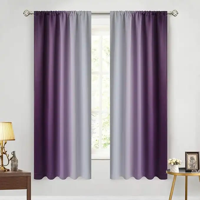 amazon.aeYakamok 63 Inch Length Ombre Curtains, Light Blocking Gradient Color Curtains, Room Darkening Thermal Insulated Rod Pocket Window Drapes for Bedroom(Purple and Greyish White, 2 Panels, 52 Inch Width)