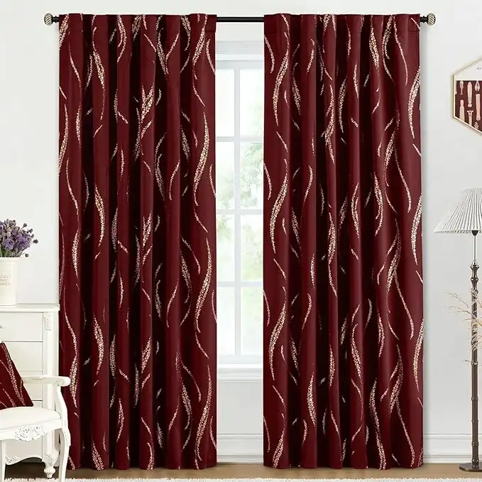 Yakamok Blackout Curtains 84 inch Length Living Room Thermal Insulated Gold Wave Line Dots Pattern Curtains Room Darkening Back Tab Curtains for Bedroom, Burgundy, W52 x L84-inch, 2 Panels — Price History & Tracker | DeserTracker