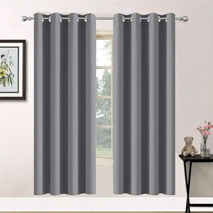 amazon.aeYakamok Blackout Thermal Insulated Grommet Grey Curtains for Bedroom/Living Room 52W x 63L|2 Panels Grey
