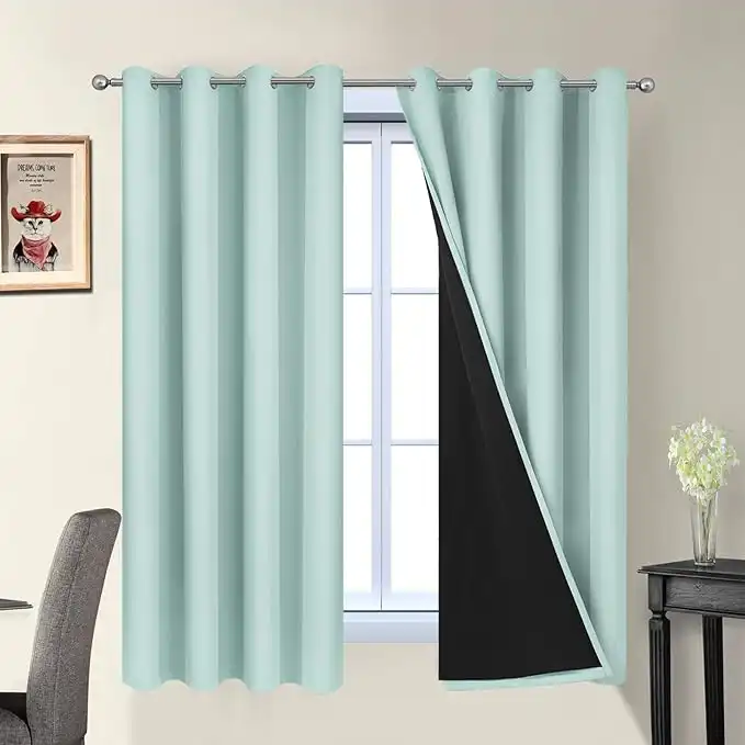 amazon.aeYakamok Thermal Insulated 100% Blackout Curtains for Bedroom, 2 Thick Layers Completely Blackout Drapes for Living Room with Black Liner(52Wx63L, Aqua, 2 Panels)