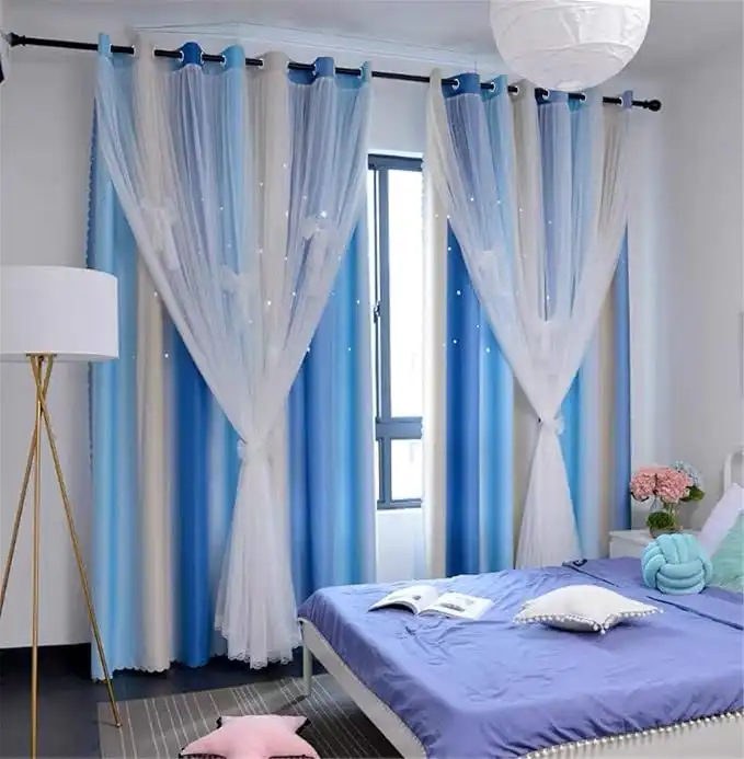 Yancorp Curtains for Girls Bedroom Kids Room Rainbow Curtains Nursery Curtain 108 inches Length Grommet Rainbow Color Decor for Playroom (Blue Beige, W52 X L108)