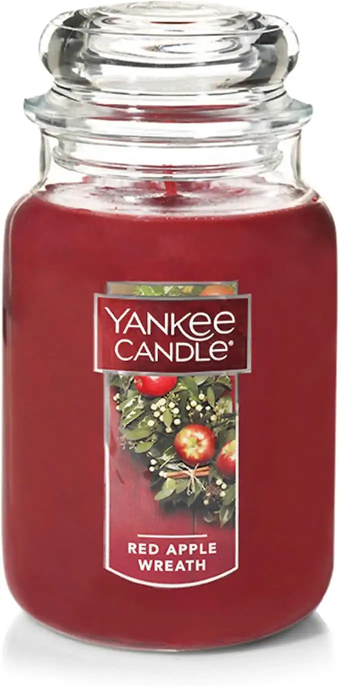 Yankee Candle Red Apple Wreath Scented, Classic 22oz Large Jar Single Wick Candle, Over 110 Hours of Burn Time