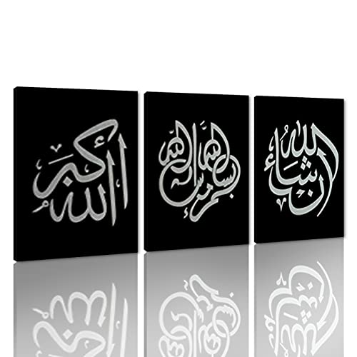 Yatsen Bridge Handpainted Arabic Calligraphy Islamic Wall Art 3 Piece Oil Paintings on Canvas for Living Room Framed and Stretched (black)