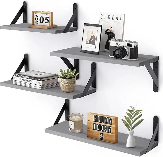 amazon.aeYGEOMER Floating Shelves, Set of 4, Gray Wood Wall Mounted Shelf for Living Room, Bathroom, Bedroom and Plants