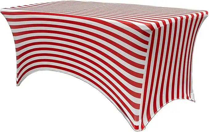 YOUR CHAIR COVERS Rectangular Spandex 6ft Fitted Tablecloth – Wedding & Event Stretch Decoration (Red & White Striped) — Price History & Tracker | DeserTracker