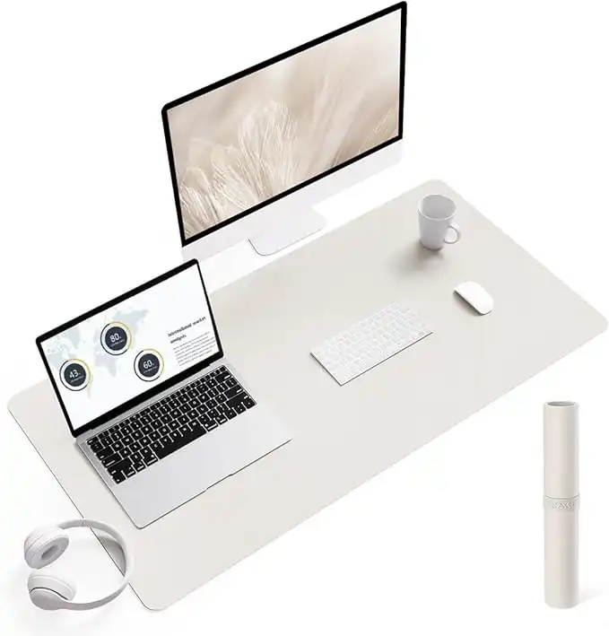 YSAGi Non-Slip Desk Pad, Waterproof PVC Leather Desk Table Protector, Ultra Thin Large Mouse Pad, Easy Clean Laptop Desk Writing Mat for Office Work/Home/Decor(Apricot Gray, 35.4" x 17")