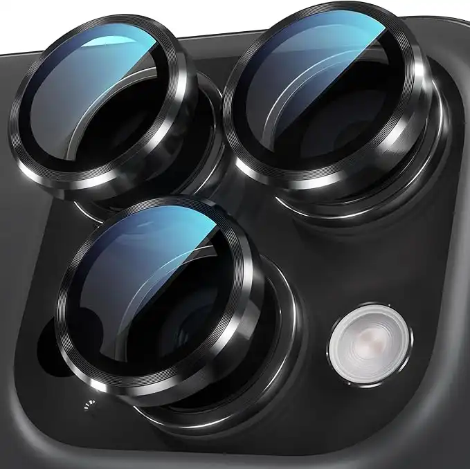 YWXTW Camera Lens Protector for iPhone 16 Pro/iPhone 16 Pro Max, [1 Step Installation Tray] Tempered Glass Screen Protector Metal Individual Camera Cover Accessories Case Friendly (Black Titanium)