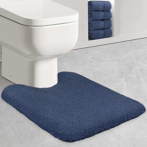 ZARCKER Toilet Mat, Pedestal Mat For Toilet 50 * 60CM, Extra Soft and Fluffy Microfiber Bath Mat Pedestal,Non Slip, Machine Wash, Quick Dry (Navy Blue)