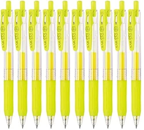 Zebra Sarasa Clip Retractable Gel Ink Pen, Rubber Grip, 0.5mm, Neon Yellow Ink, Value Set of 10