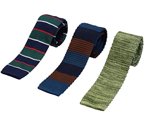 ZENXUS Knit Ties for Men, Wrinkle Proof, Machine Washable, 2.35 inch Skinny Ties, Flat-end Sock Ties, 3-Pack, Set-17, Skinny