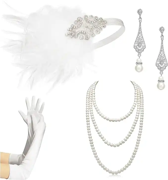 Zivyes 1920s Flapper Accessories Gatsby Costume Accessories Set for Women 20s Headpiece Pearl Necklace Gloves Holder, One Size, pearl aluminum shell, Rhinestone Pearl — Price History & Tracker | DeserTracker