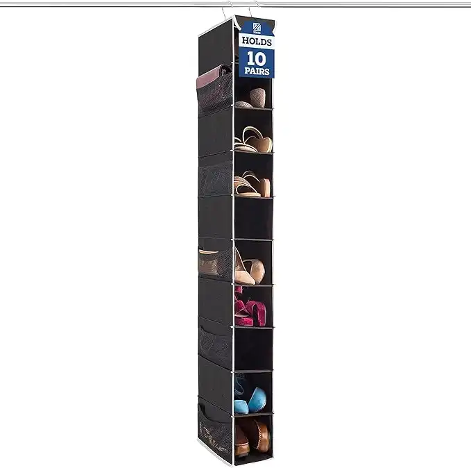 Zober Hanging Shoe closet organizer | 10 Shelf Shoe Organizer | Breathable Polypropylene | (Black) by ZOBER — Price History & Tracker | DeserTracker