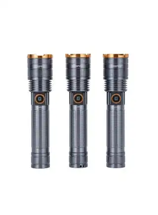 noon.comZoomable 3 IN 1 Family Pack Rechargeable LED Flashlight| Aluminium Alloy Body | 15 W High Power LED | Type C Charging Li-ion 4000 mAh Battery| 6 Hrs working time GFL4658 Black 20cm