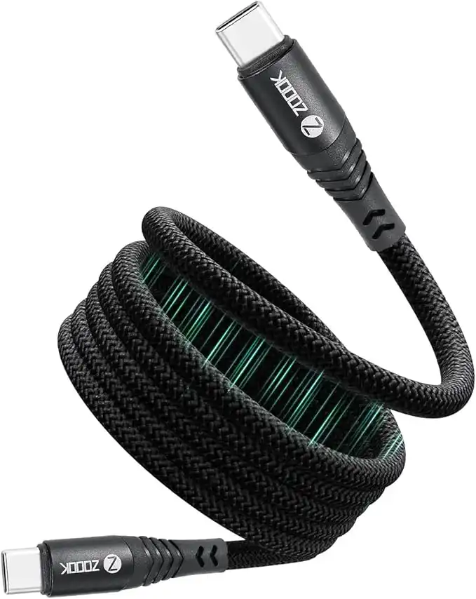 ZOOOK USB-C to USB-C Premium Magnetic Self-Organizing Cable with 65W Power Delivery and 120cm Durable Nylon Braided Sync and Charge Cable, Reversible Connectors, Thick Copper Core, Springy (Black)