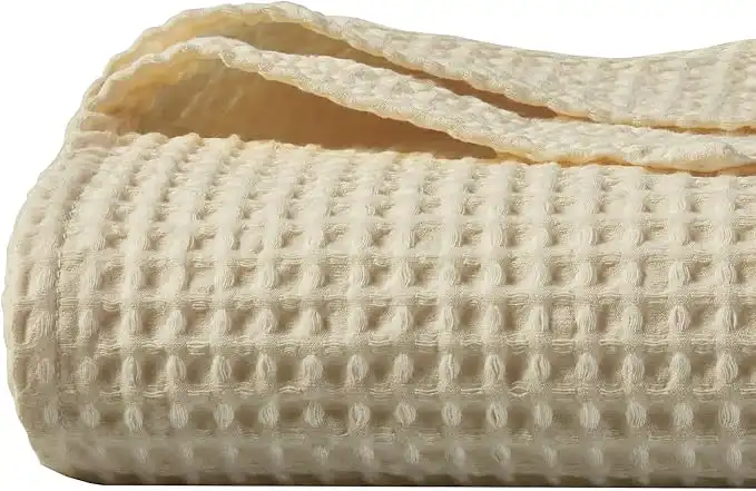 ZZZhen Waffle Blanket 100% Cotton Throw Size - Waffle Weave Bed Blankets for All Seasons, White, 50x60 inches