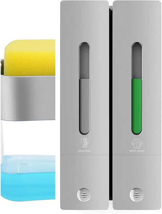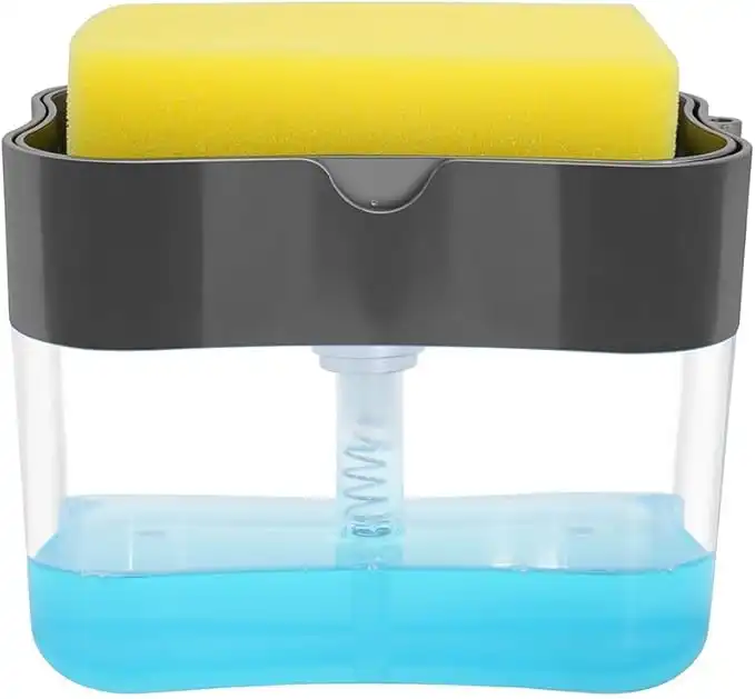 Aeakey Soap Dispenser,Dish Soap Dispenser for Kitchen,Sponge Holder Sink Dish Washing Soap Dispenser 13 Ounces (Gray0822)