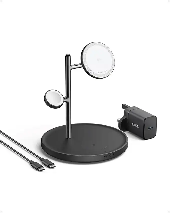 (5 products)Anker MagSafe Charger Compatible, MagGo 3-in-1 Wireless Charging Station, Qi2 Certified 15W Wireless Stand, Apple Watch Charger for MagSafe, For iPhone 17/16/15, AirPods (40W USB C Charger Included)