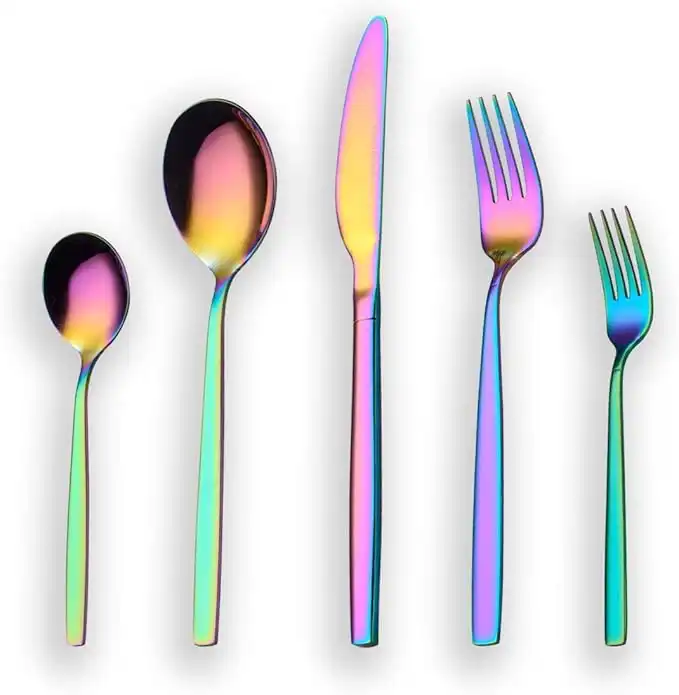 (3 products)Berglander 30 Pieces Titanium Rainbow Color Plated Cutlery Set, Colorful Cutlery Set, Service for 6 (Shiny Rainbow)