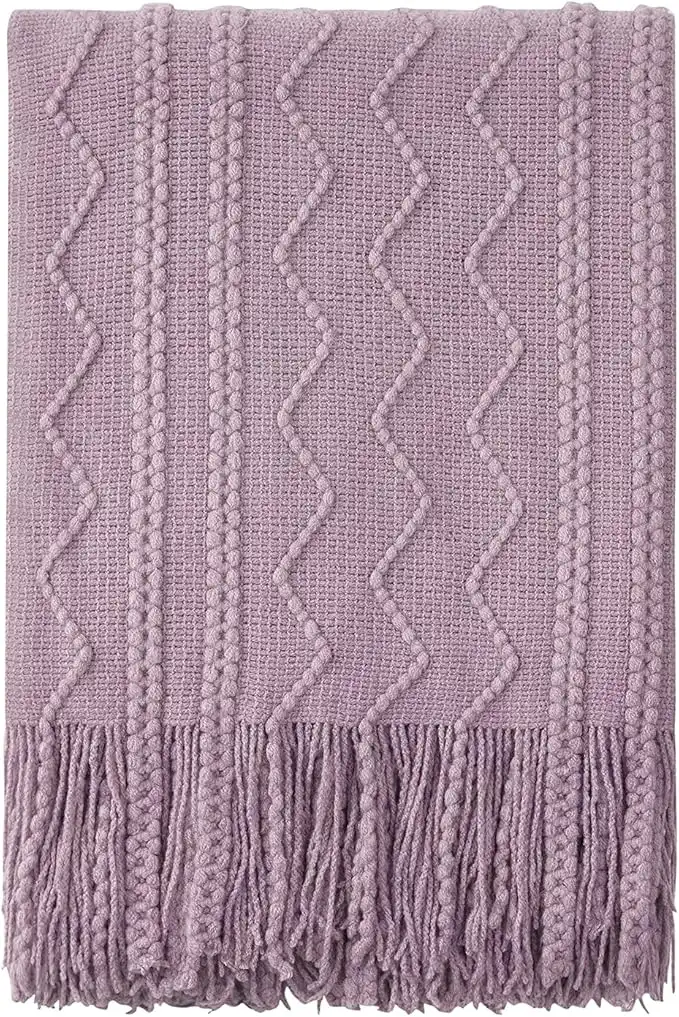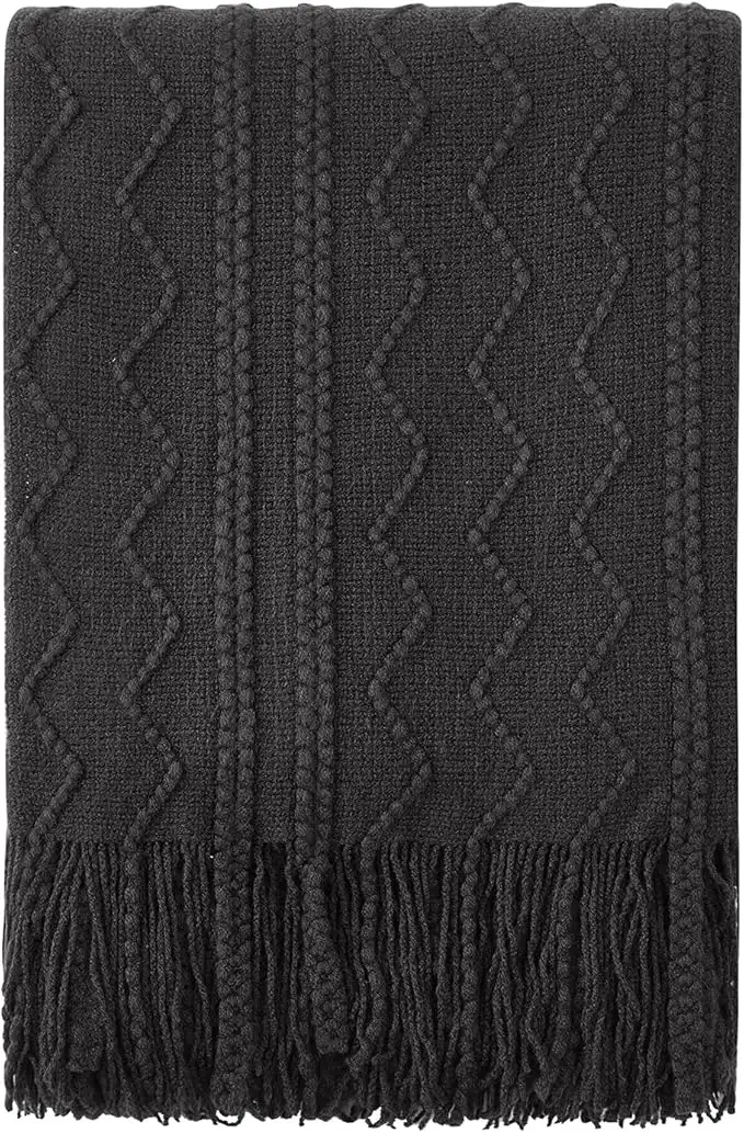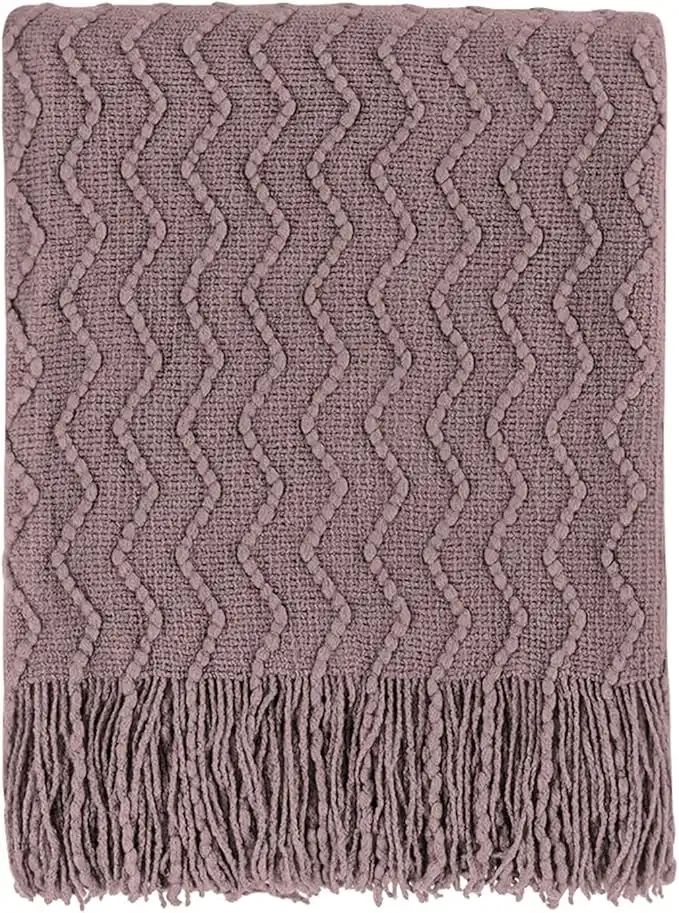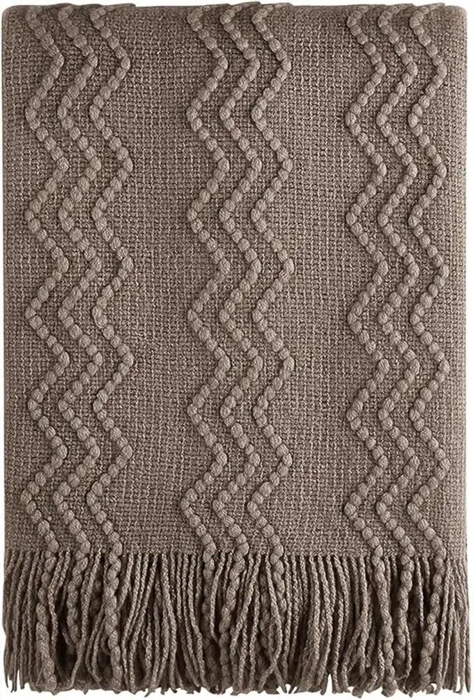 BOURINA Textured Solid Soft Sofa Throw Couch Cover Knitted Decorative Blanket,Brown, 127x152cm