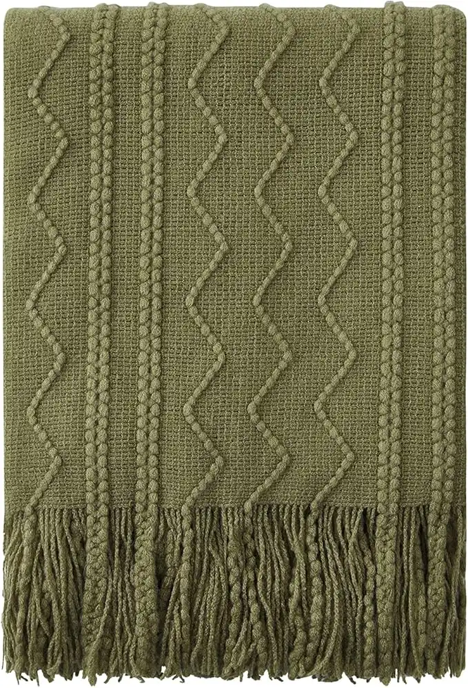 (6 products)BOURINA Textured Solid Soft Sofa Throw Couch Cover Knitted Decorative Blanket, Dark Green, 127x152cm