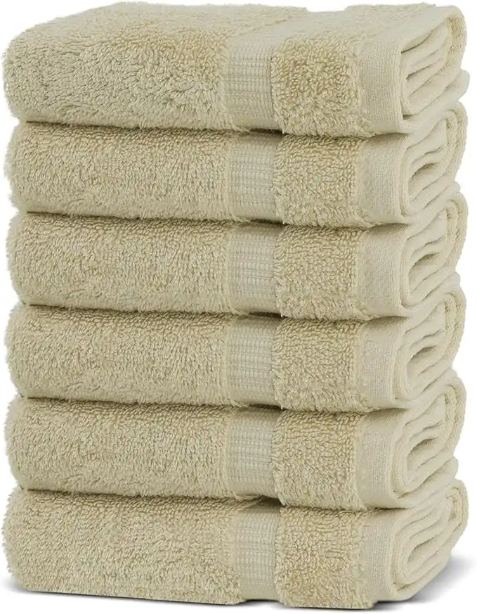 (9 products)Chakir Turkish Linens 100% Cotton Premium Turkish Towels for Bathroom | 13'' x 13'' (6-Piece Washcloth, Beige)