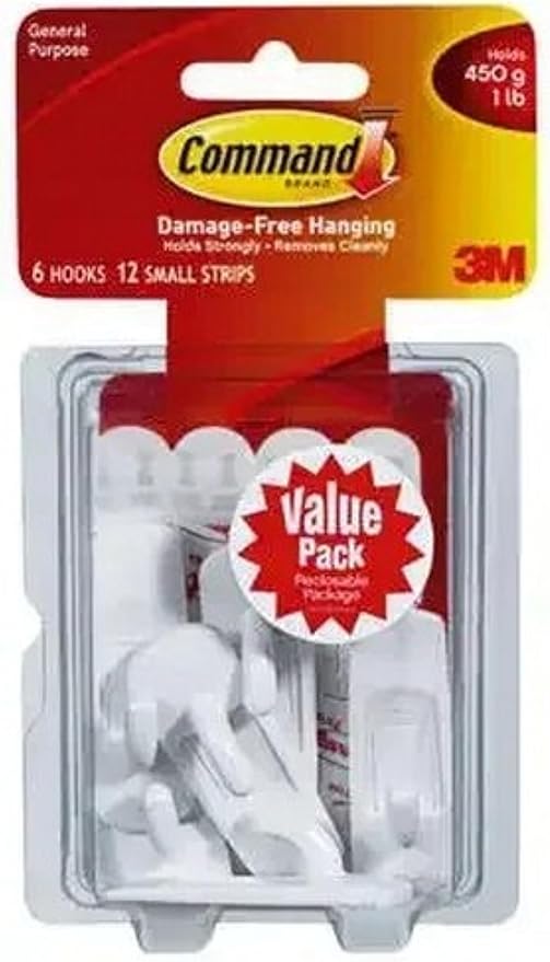 (1 product)Command Small Utility Hooks, White, 6-Hooks, Organize Damage-Free