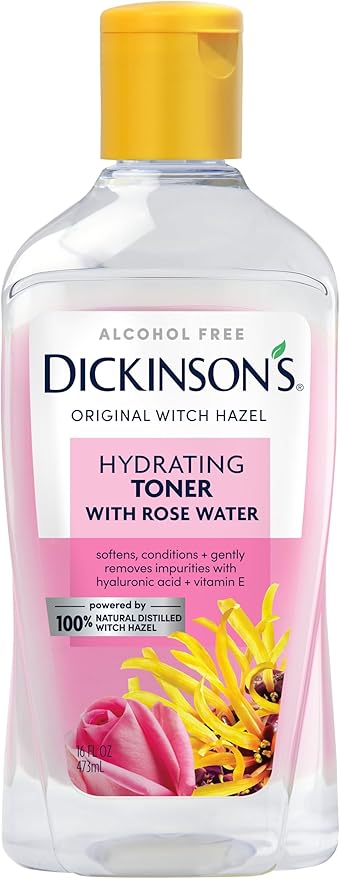 (1 product)Dickinson's Enhanced Witch Hazel Hydrating Toner with Rosewater, Alcohol Free, 98% Natural Formula, 16 Fl Oz (Pack of 1)
