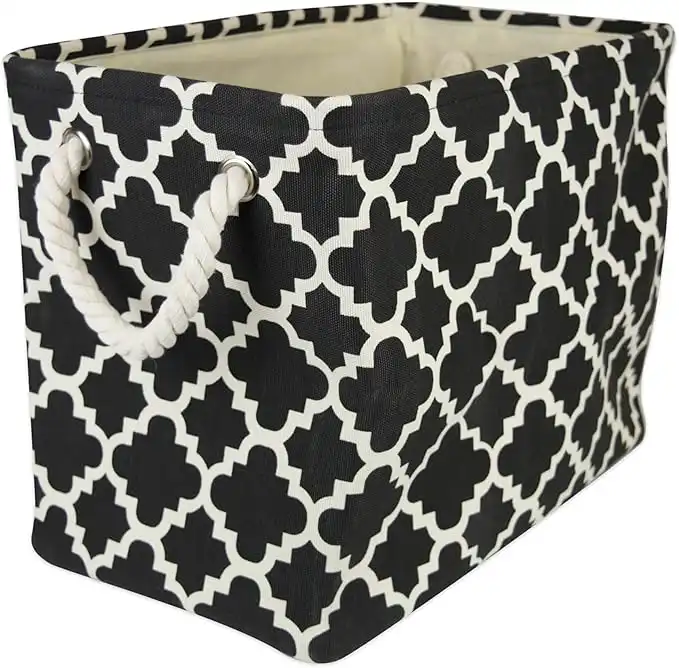 Dii polyester container with handles, lattice storage bin, medium, black lattice