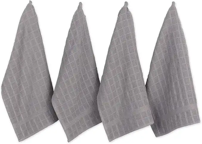 DII Windowpane Dishtowel Set, Cotton, Gray Solid, 16x26